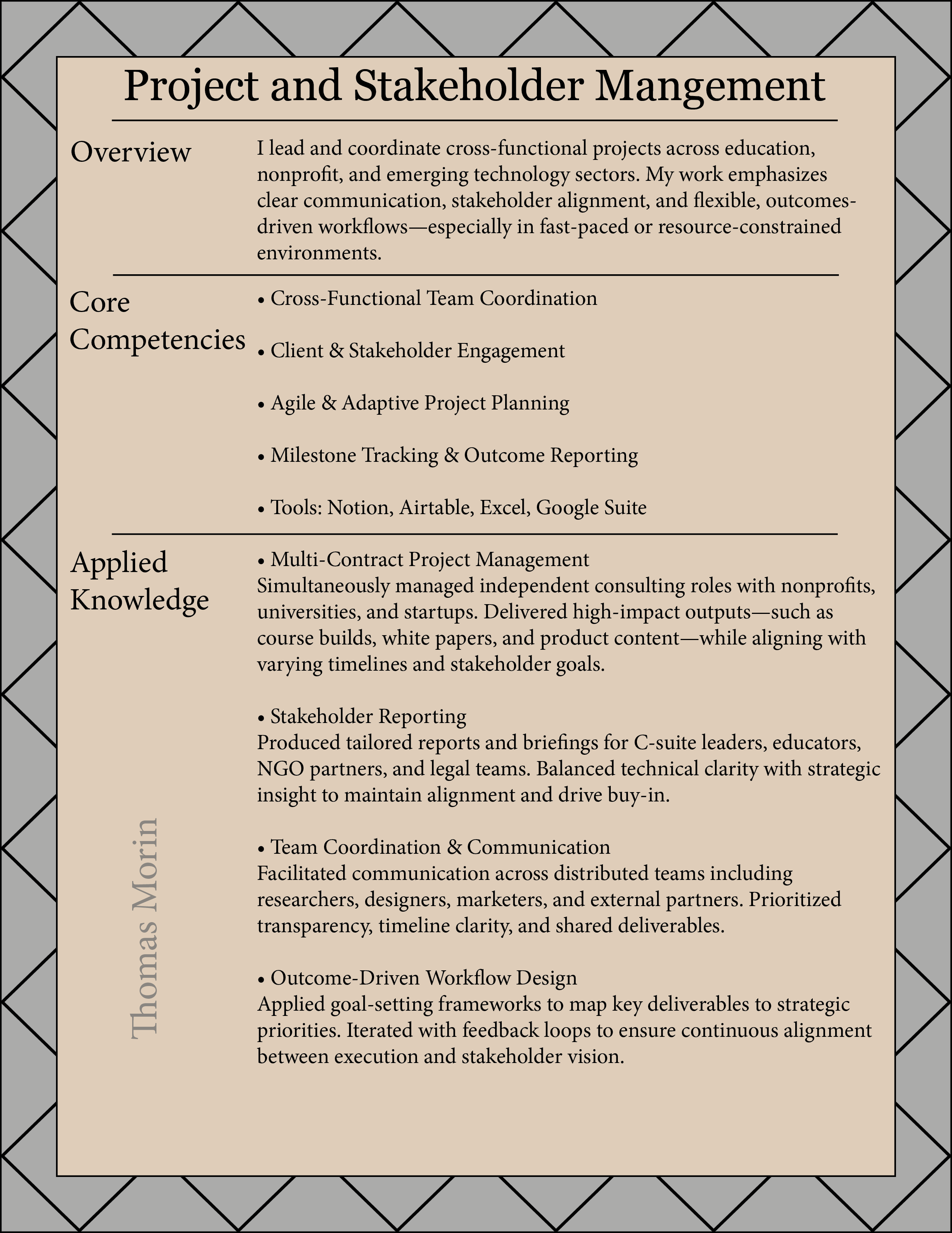"I worked with Thomas for over a year and was consistently impressed by his drive, ability to drive projects, and work in integrated teams. He designed emerging technology professional development courses for a broad range of customers. He also handled complex product marketing challenges as our lead marketing analyst. He has a broad understanding of working within a startup, analyzing complex topics, and iterating quickly on product concepts. I highly recommend him for those looking for and experienced emerging tech and marketing analyst with drive to execute complex projects and the creativity to build new initiatives. Thomas is a pleasure to work with an an excellent culture fit."
